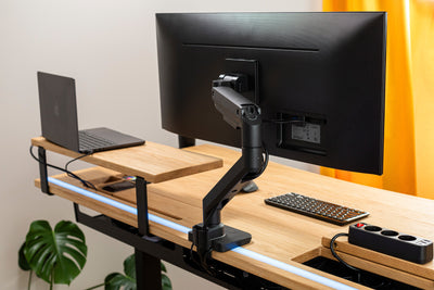 Notre support de double écran se distingue par sa construction en alliage de zinc robuste et sa technologie de ressort à gaz avancée. Testé pour plus de 20 000 cycles, c'est un produit durable qui répond à vos besoins professionnels. Avec une flexibilité totale et un design ergonomique, vous pouvez ajuster vos écrans pour un confort optimal, réduisant ainsi la fatigue. Notre support est compatible avec une large gamme de moniteurs, offrant une installation facile et rapide, ce qui en fait le choix parfait pour tout bureau moderne.